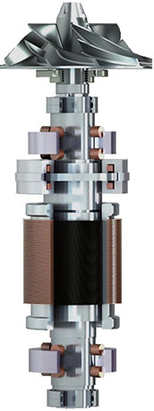 坎德拉新能源磁懸浮電機是融合了高速永磁電機技術和五軸磁懸浮軸承技術的高新技術產品,轉子與軸承之間無接觸、零摩擦,工作轉速可高達54000rpm,適用于工作機與電機轉軸直聯的高速旋轉機械,相較于傳統驅動系統具有更節能、功率密度更高、噪音更小、使用壽命更長、無需潤滑、免維護等優點。